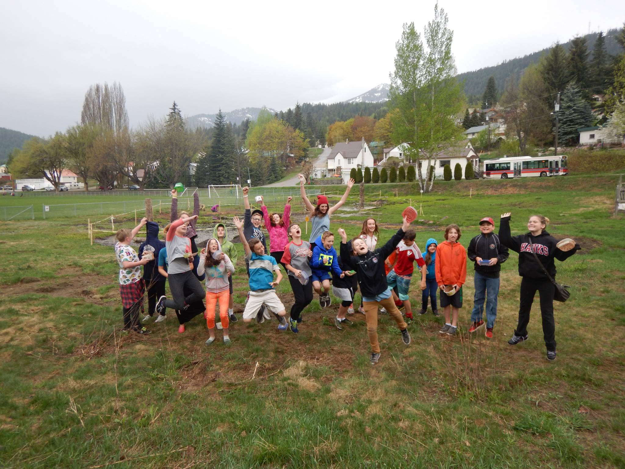 Each student made four seed bombs containing four native, non-invasive seed species: Round Leaved Alumroot, Small Flowered Penstemon, Yellow Glacier Lilly and Bee Blend Wildflowers. They then tossed them into the re-established North Jubilee Wetland area on Earth Day. “The seed bombs were easy to make and it was nice not to have to coordinate tools and other materials to do the planting. Just toss, grow, and enjoy,” said Wildsight educator, Jess Williams.
