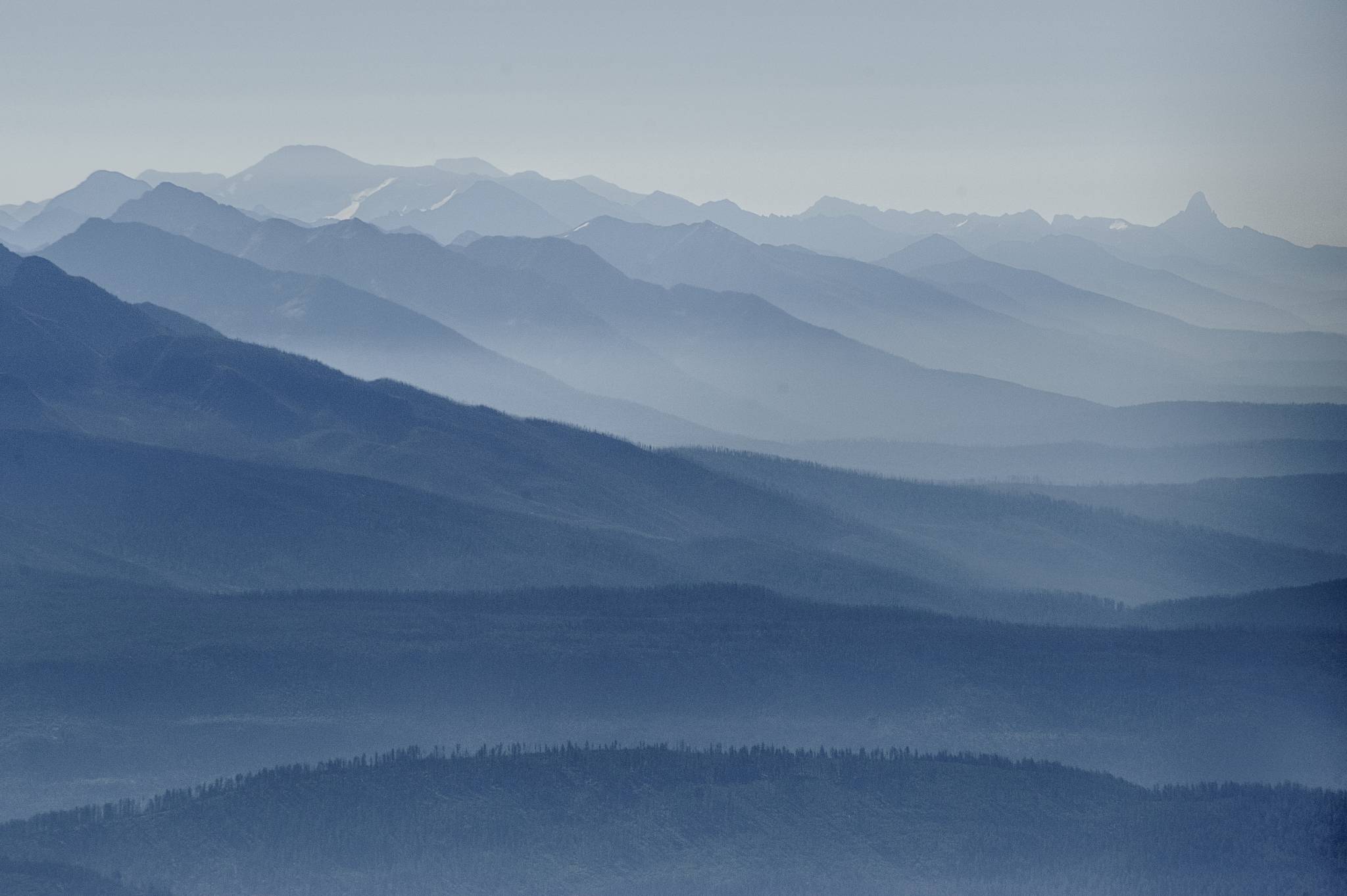 Looking east from the fire lookout on top of Mt. Hefty, the mountains of Waterton/Glacier International Peace Park are breathtaking. The Crevice fire lookout, built in 1930, is no longer in use, but the view is timeless. Looking down at the wild and remote Flathead Valley, the Canada/US border stretches out before you as a double line cut through the trees. On the American side of the line, the Flathead Valley enjoys the highest protections, while on the Canadian side, logging and other industrial activity is common.