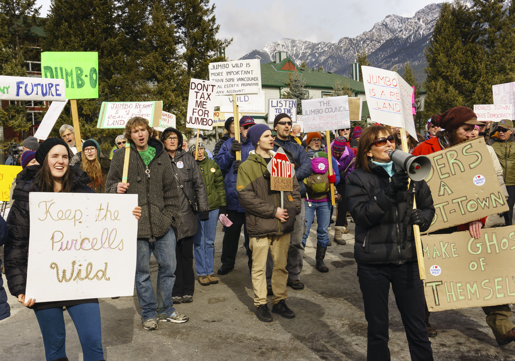 Eight years ago, I was standing with a crowd of ~100 people in Radium protesting the inaugural meeting of the Jumbo Glacier Mountain Resort Municipality (JGMRM). Having a crowd of 100 people show up for a Jumbo Wild rally wasn’t unique; in fact, it was on the small side for our rallies. But having 100 people show up mid-day on a Tuesday? That was unique, and a testament to the level of community outrage at the creation of BC’s only town with no people and an appointed mayor and council.