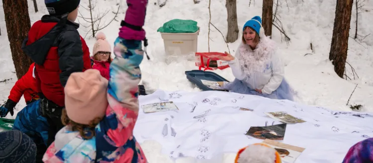 With these kits in hand, our Winter Wonder educators guided more than 1,500 young learners as they explored who might have been moving across the landscape before them. Students stepped into the lives of some of the common animals in our region, creating detailed stories using clues from both the tracksheet and the ground around them.