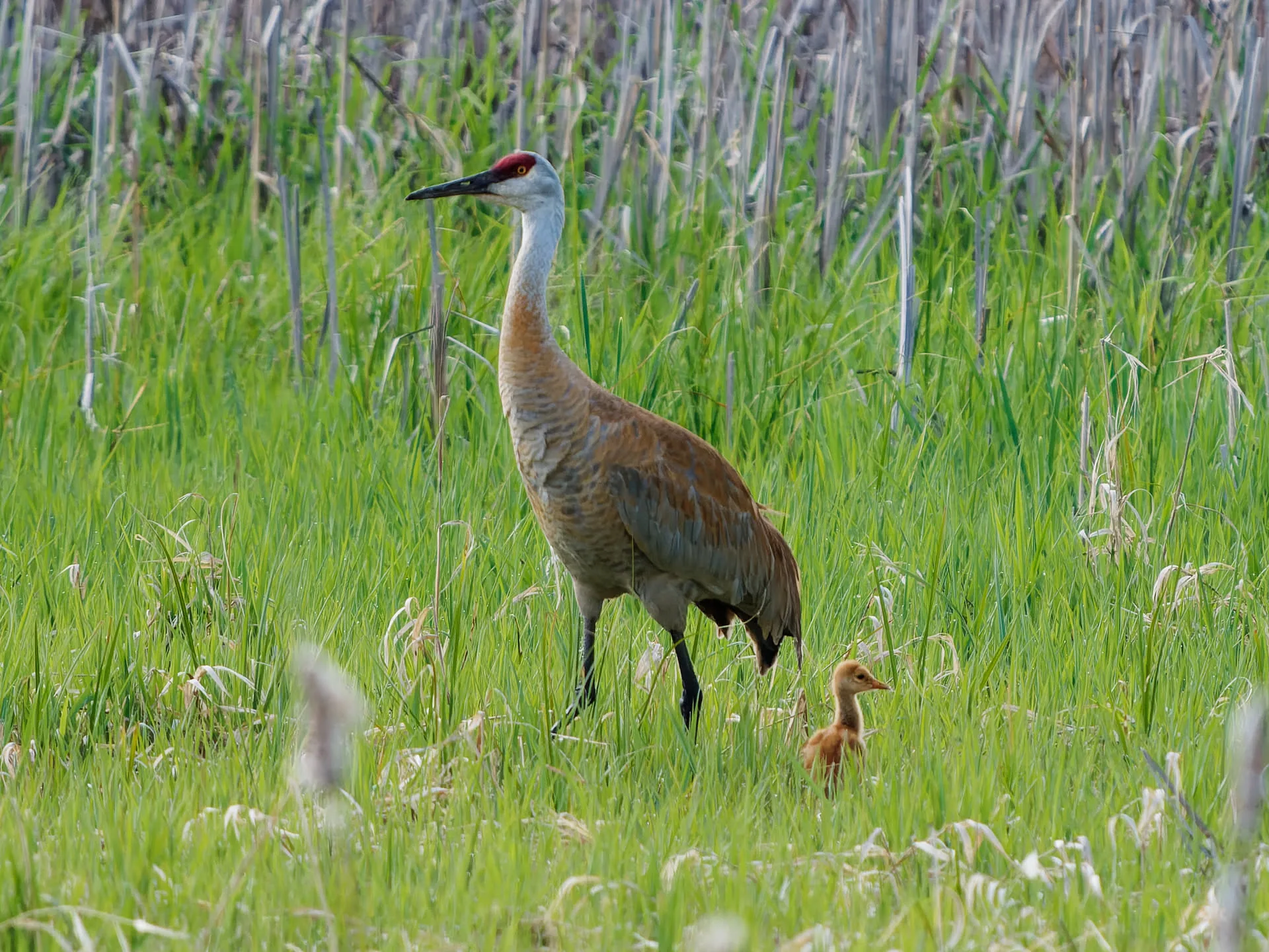 Sandhill Crane with colt (Photo credit: Dale Floer)