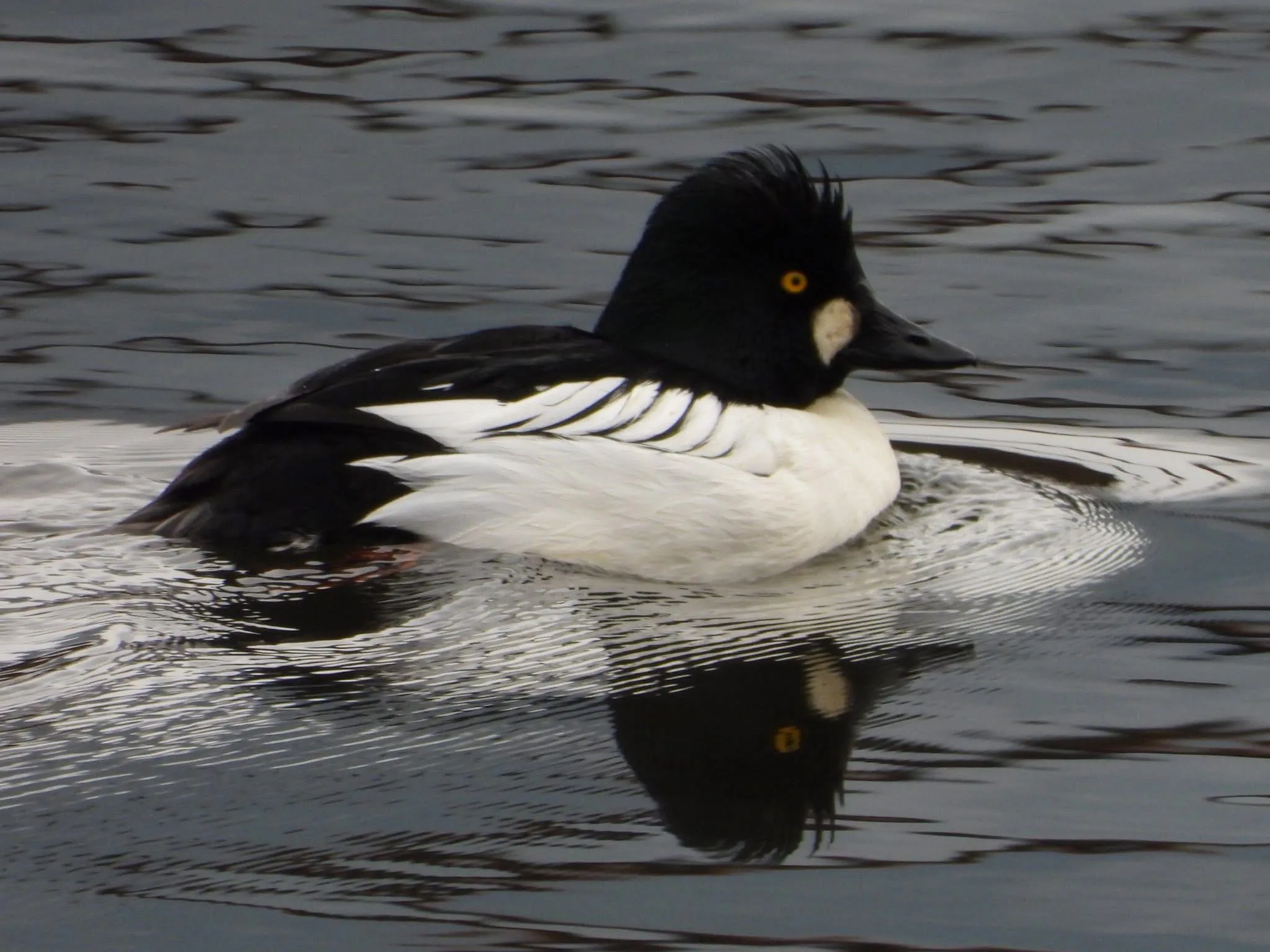 Ruddys are found in open waters, often in tight flocks. There were some out at Duck Lake recently. They should be continuing southward soon as they do not overwinter here.