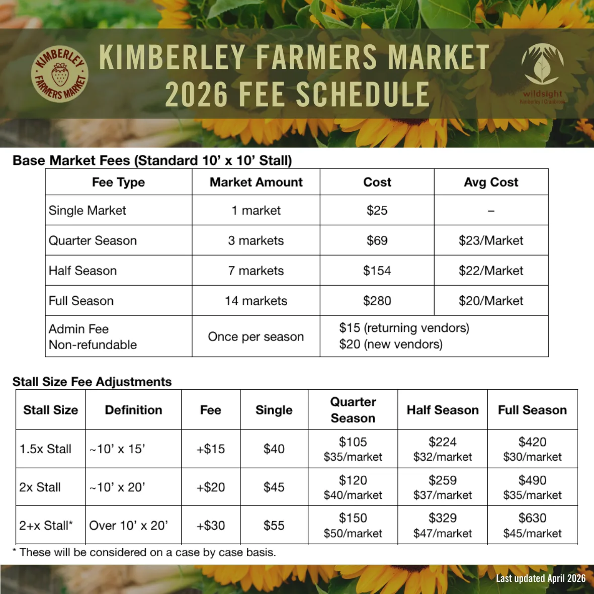 The Kimberley Farmers’ Market is growing into a vibrant community hub: bringing people together to shop, connect, and create. This season, we’re expanding into the north end of the Platzl and have secured the Gazebo, and are working hard to add shade and seating to encourage people to stay, gather, and enjoy the space. Alongside vendors, we’re hoping to feature music, workshops, art, and family-friendly activities, including the return of kids programming.