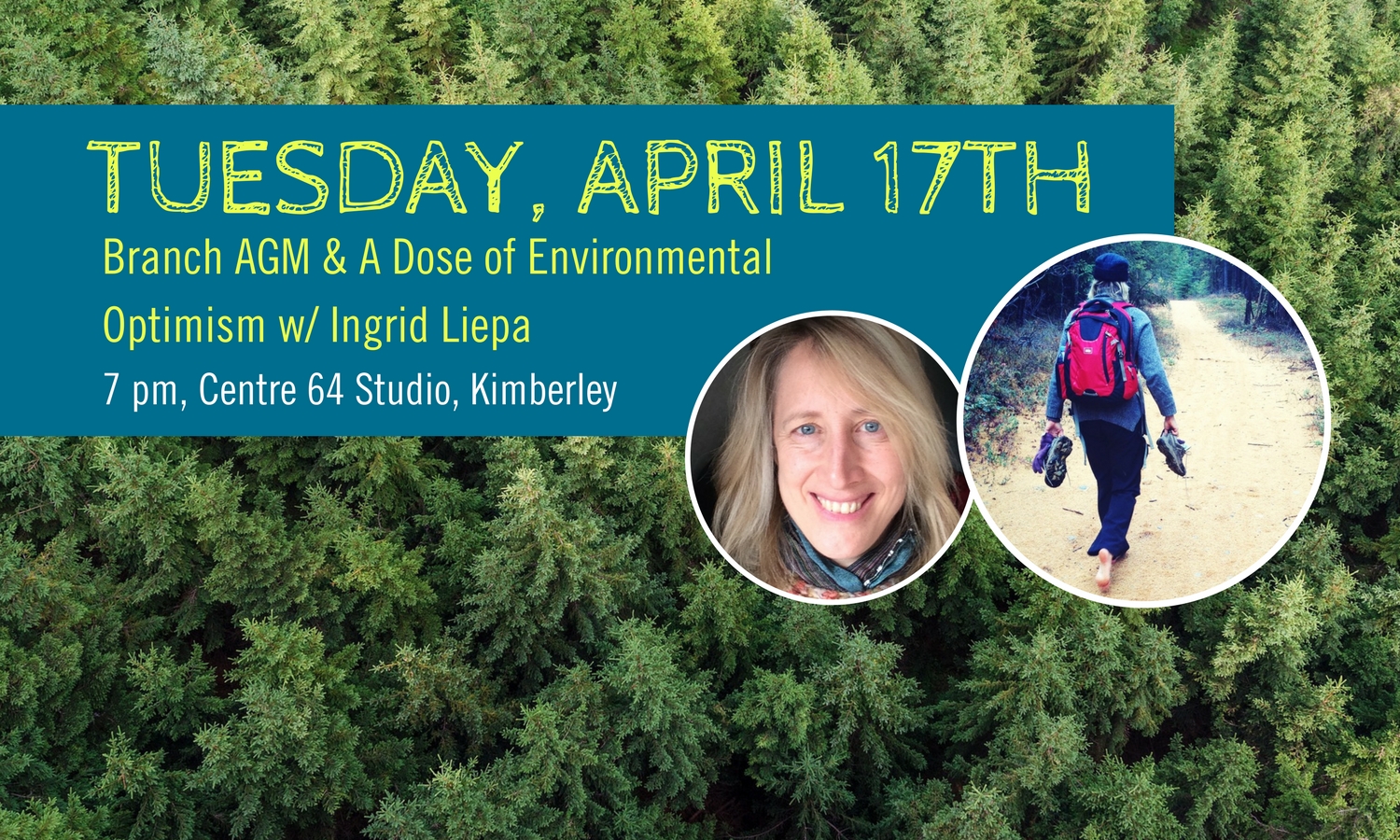 Join Wildsight Kimberley Cranbrook for our 2018 Branch AGM, featuring an address on Environmental Optimism by Kimberley’s own happiness guru, Ingrid Liepa! The event kicks off on Tuesday, April 17th at 7 pm at the Centre 64 studio.