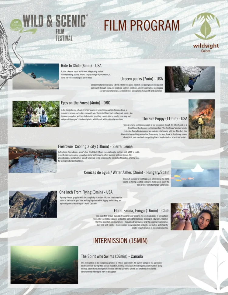 The Wild & Scenic Film Festival is an internationally recognized event that showcases inspiring environmental and adventure films from around the world. Beyond entertainment, it serves as a powerful tool to spark dialogue, raise awareness, and engage communities in protecting the natural world. We hope that hosting the festival here in Golden will provide a wonderful opportunity to connect people through stories that celebrate the beauty of our planet and inspire action to preserve it.